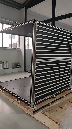 Dimensi perangkat adalah: dasar 1000 mm x 1000 mm dan dengan tinggi 1 0 00mm , termasuk dua pelat samping, satu bagian bawah dan satu pelat atas, pelat atas dapat dilepas, pelat bawah dipasang pada struktur dengan roda, hingga biarkan gerakannya.